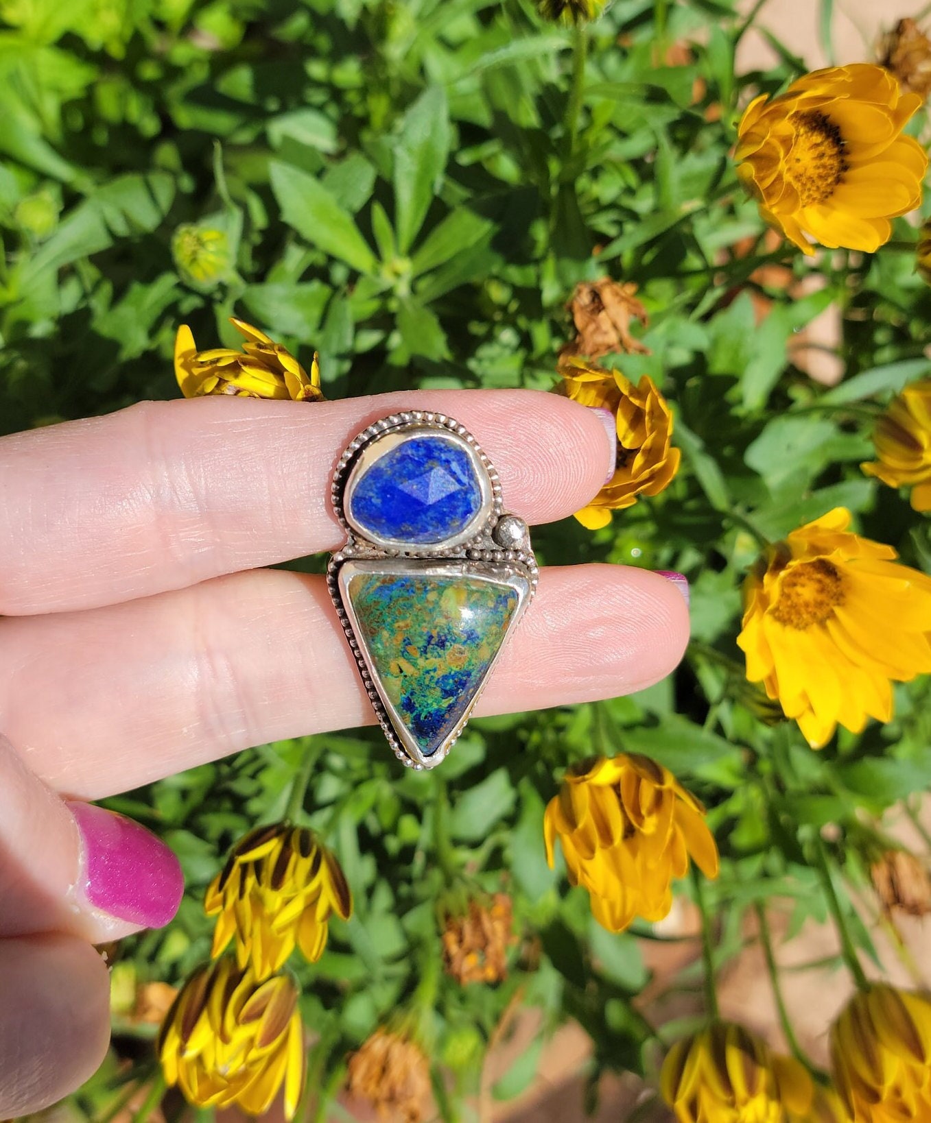 Azurite & Lapis Lazuli statement ring, 8 1/2