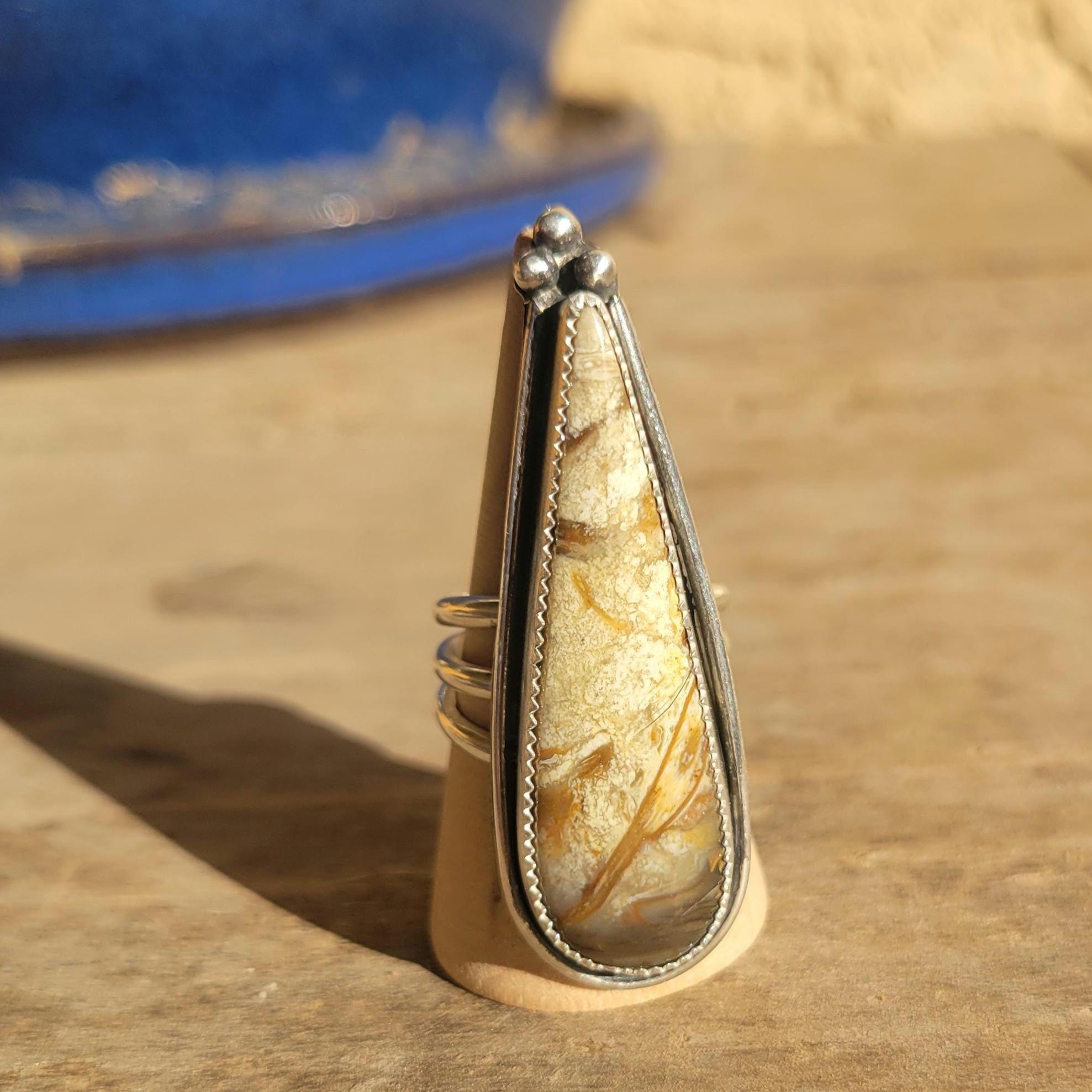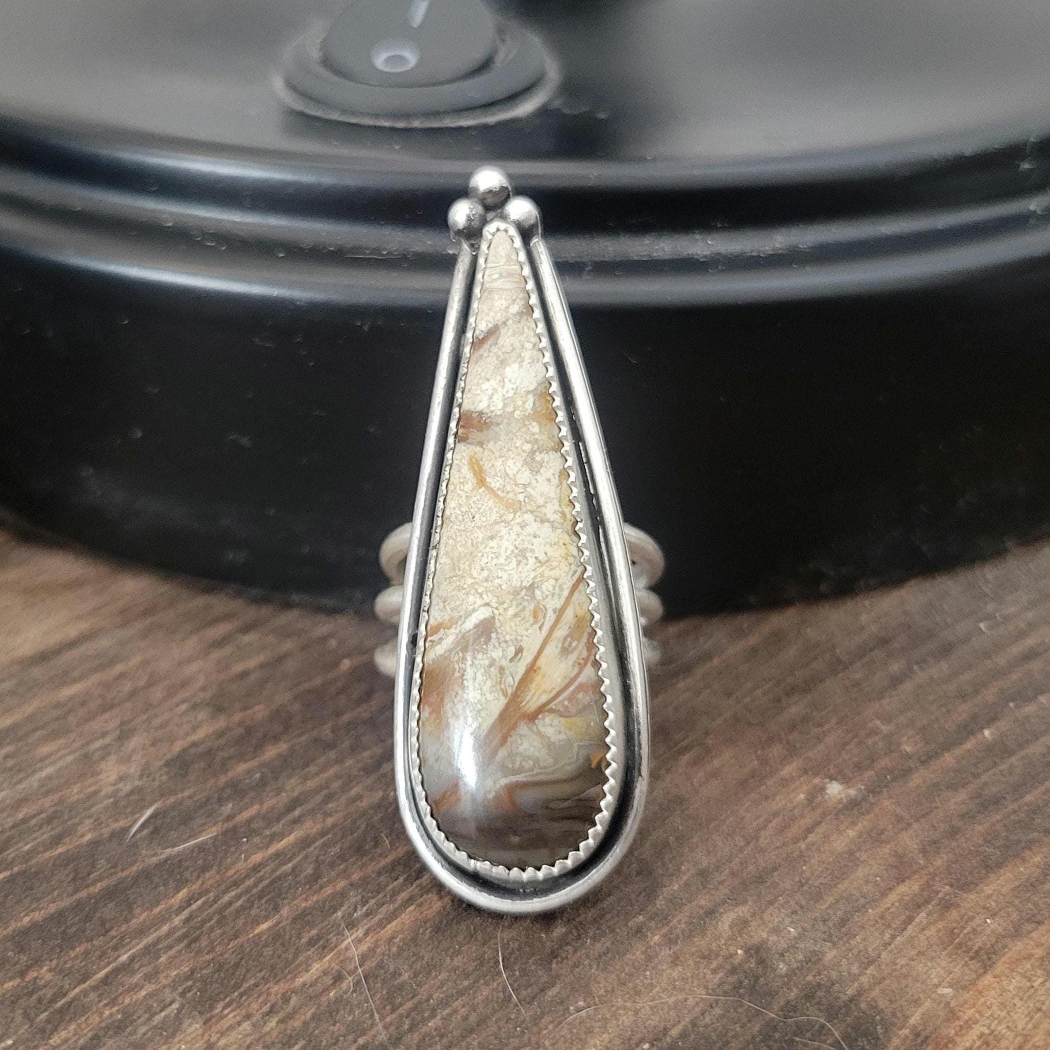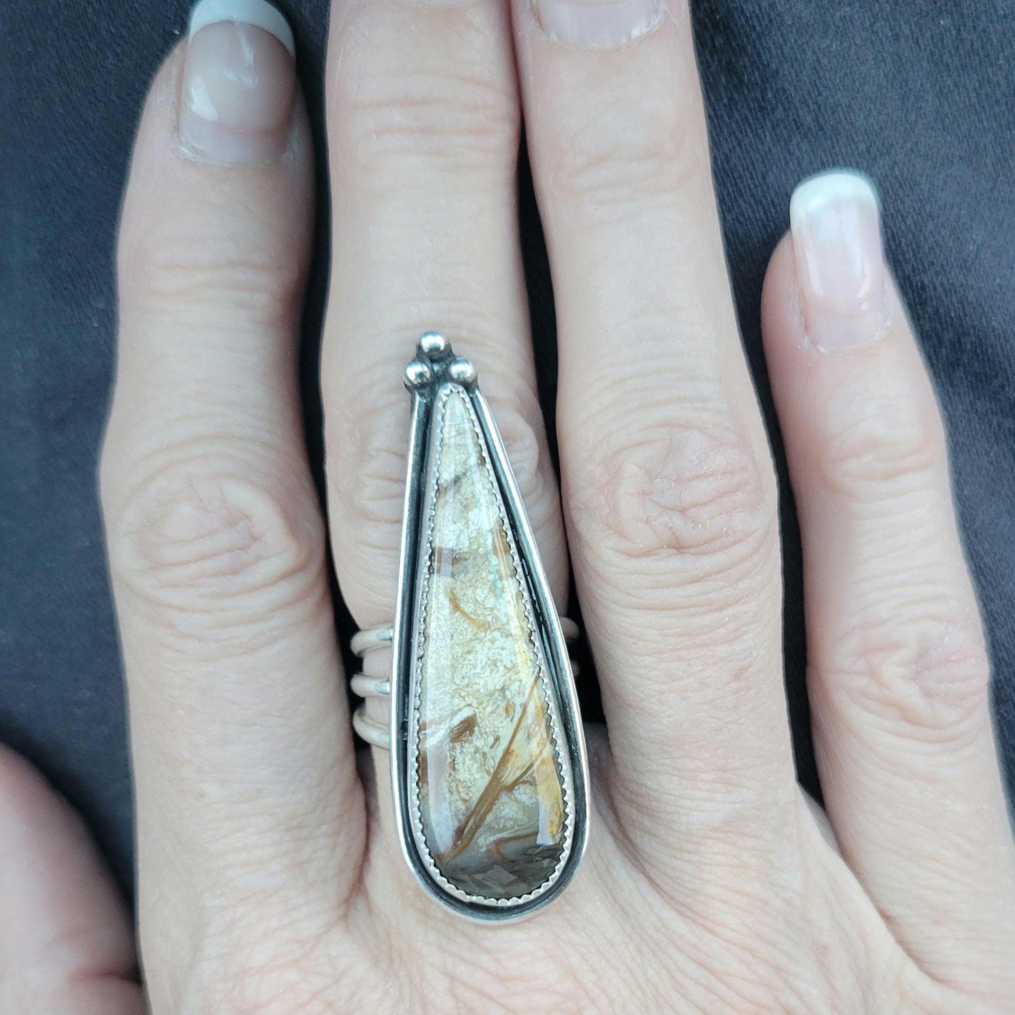 CA Fossil set in sterling silver with triple, split, half round band size 7 1/4