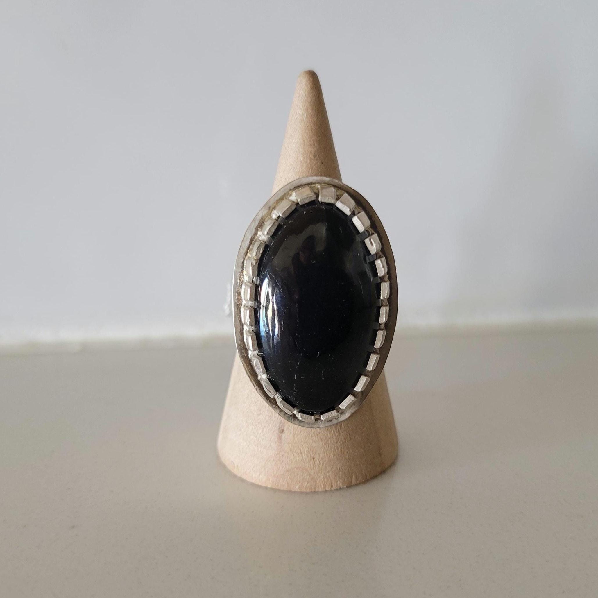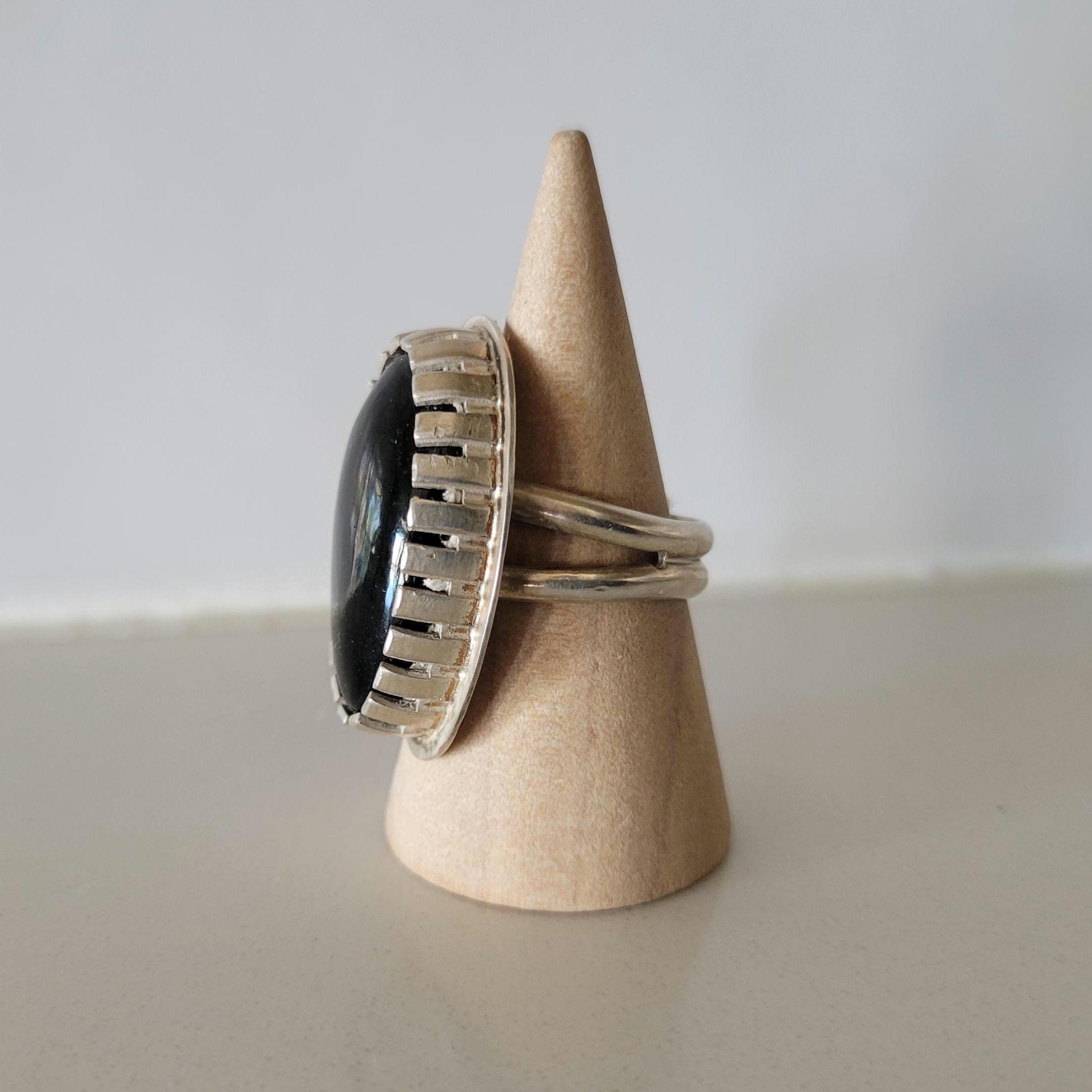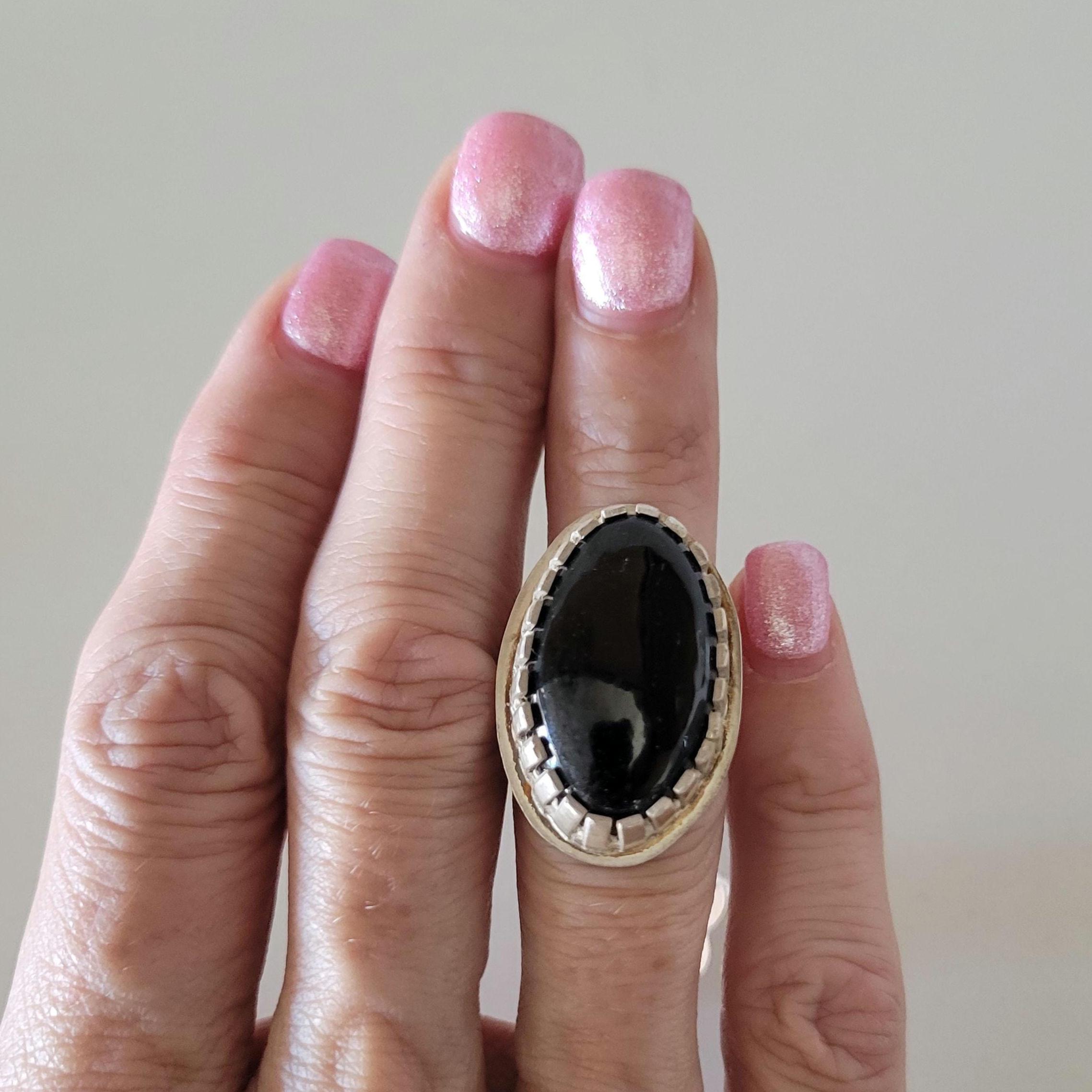 Black Tourmaline Sterling Silver Statement Ring - Size 6 1/4