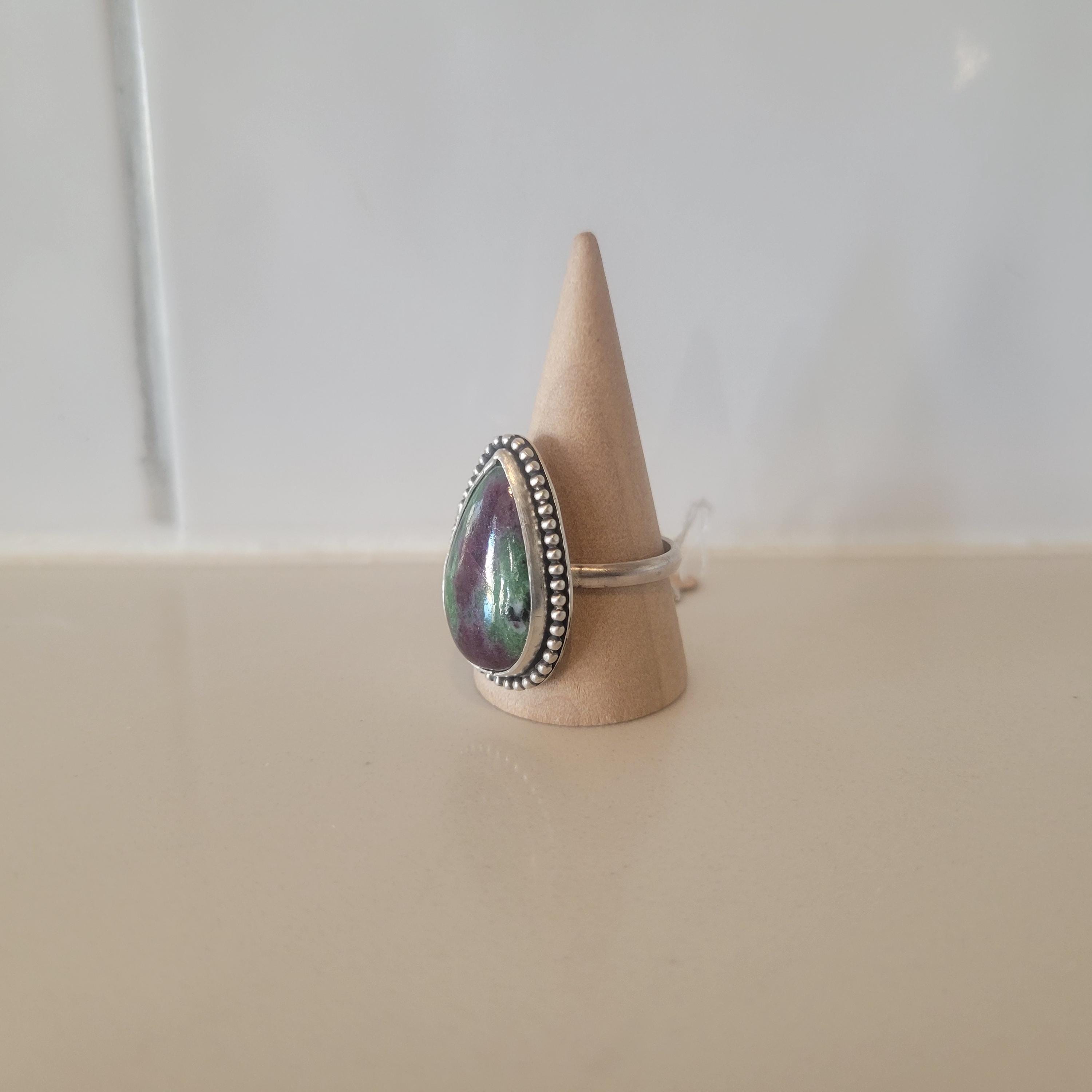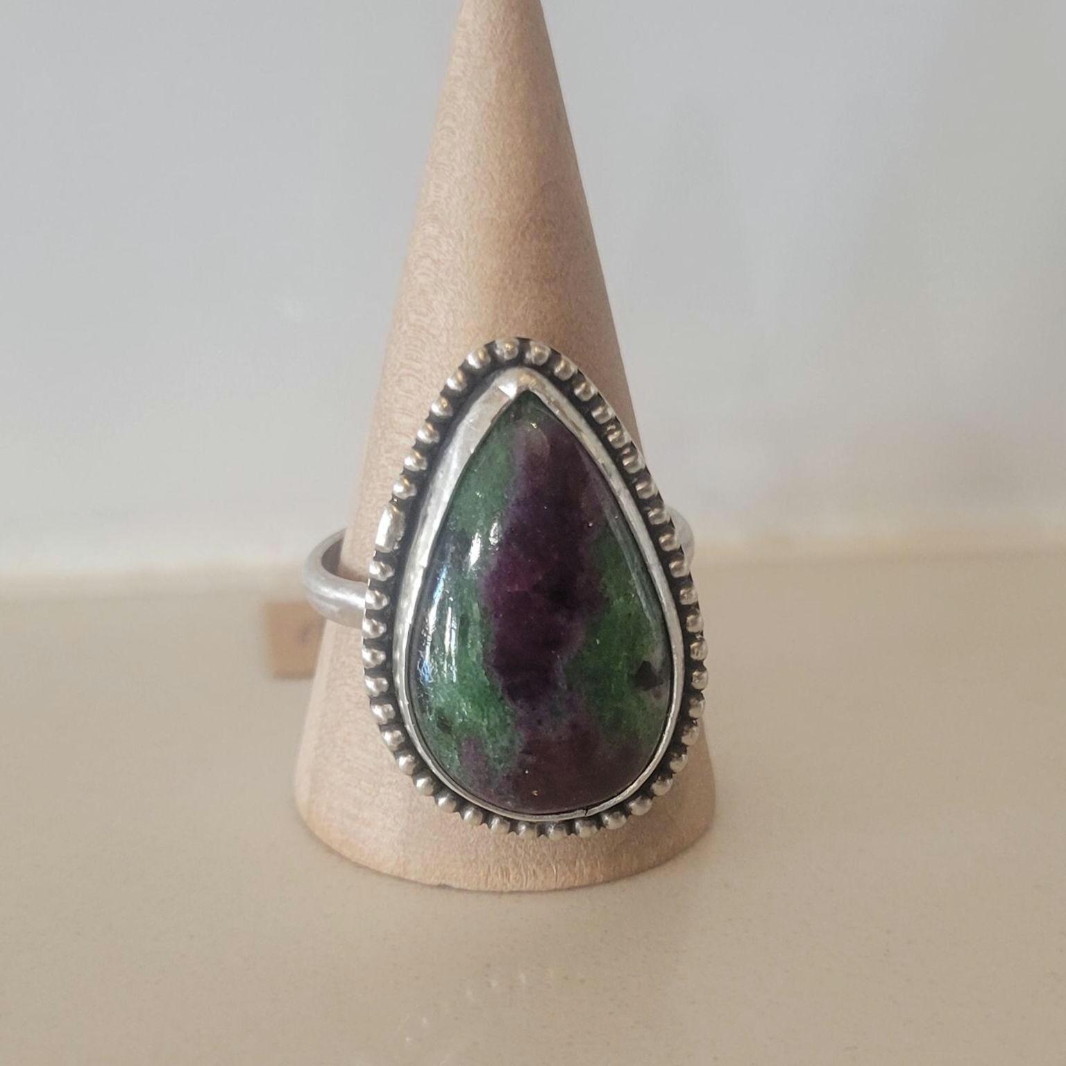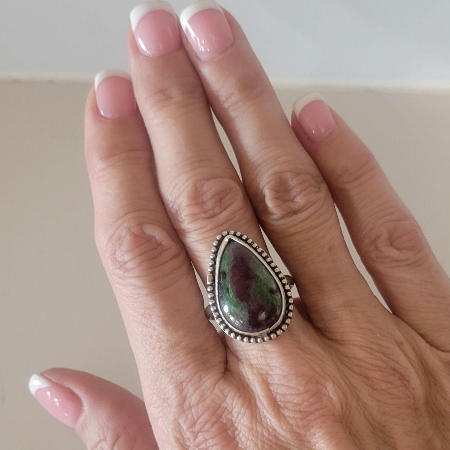 Ruby Zoisite tear in sterling silver, size 9.5