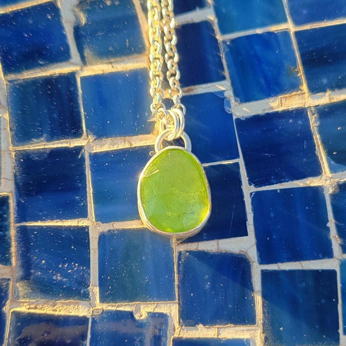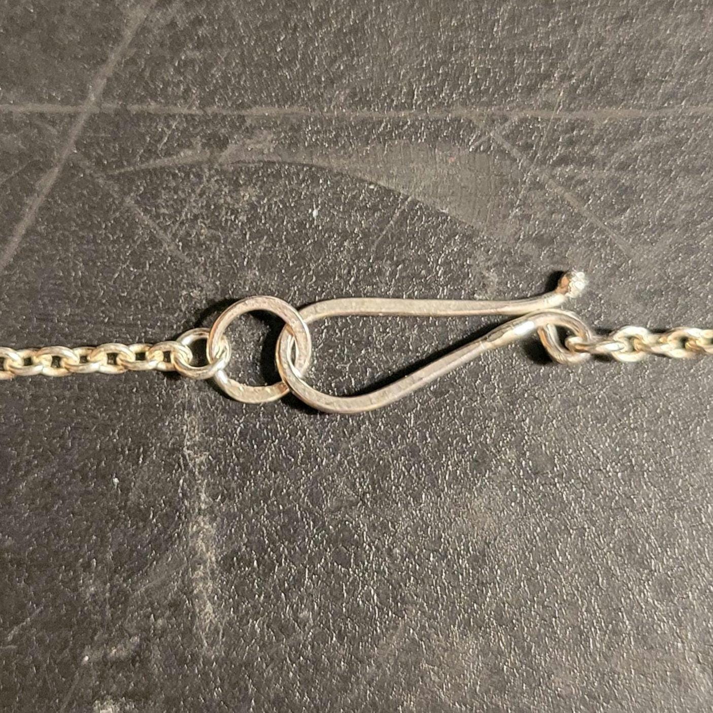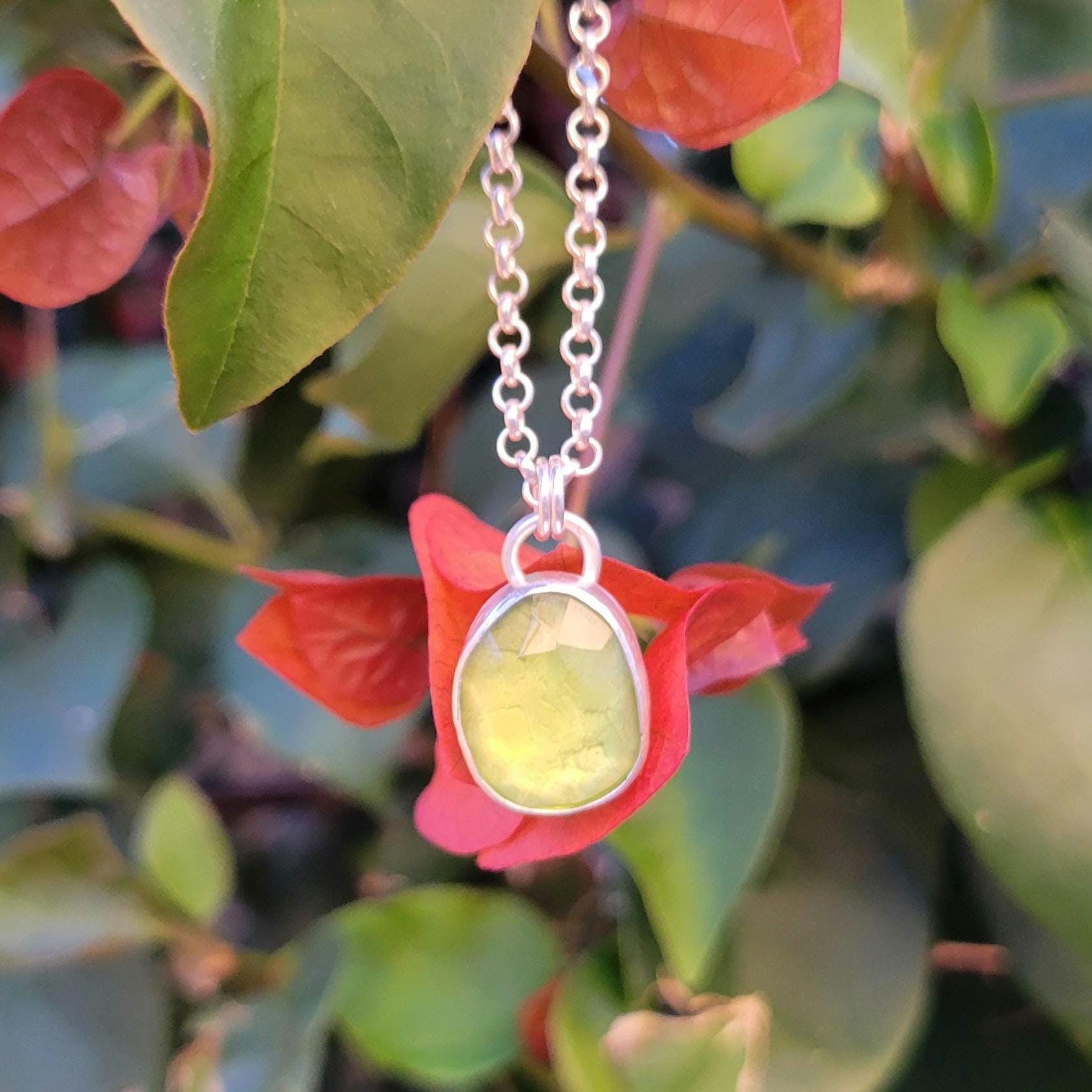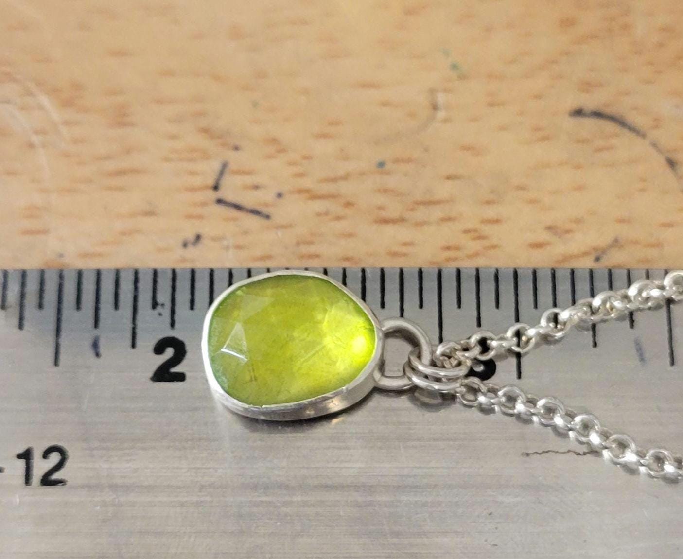 Peridot Crystal rose cut free form stone set in sterling silver with sterling silver chain & handmade clasp. Chain is 16" rollo.