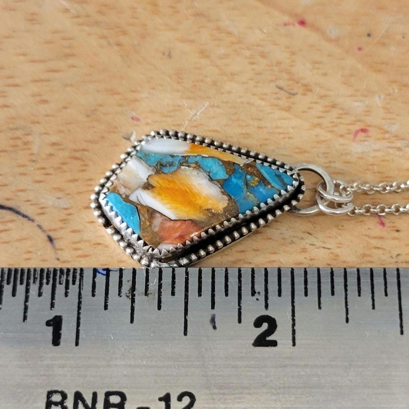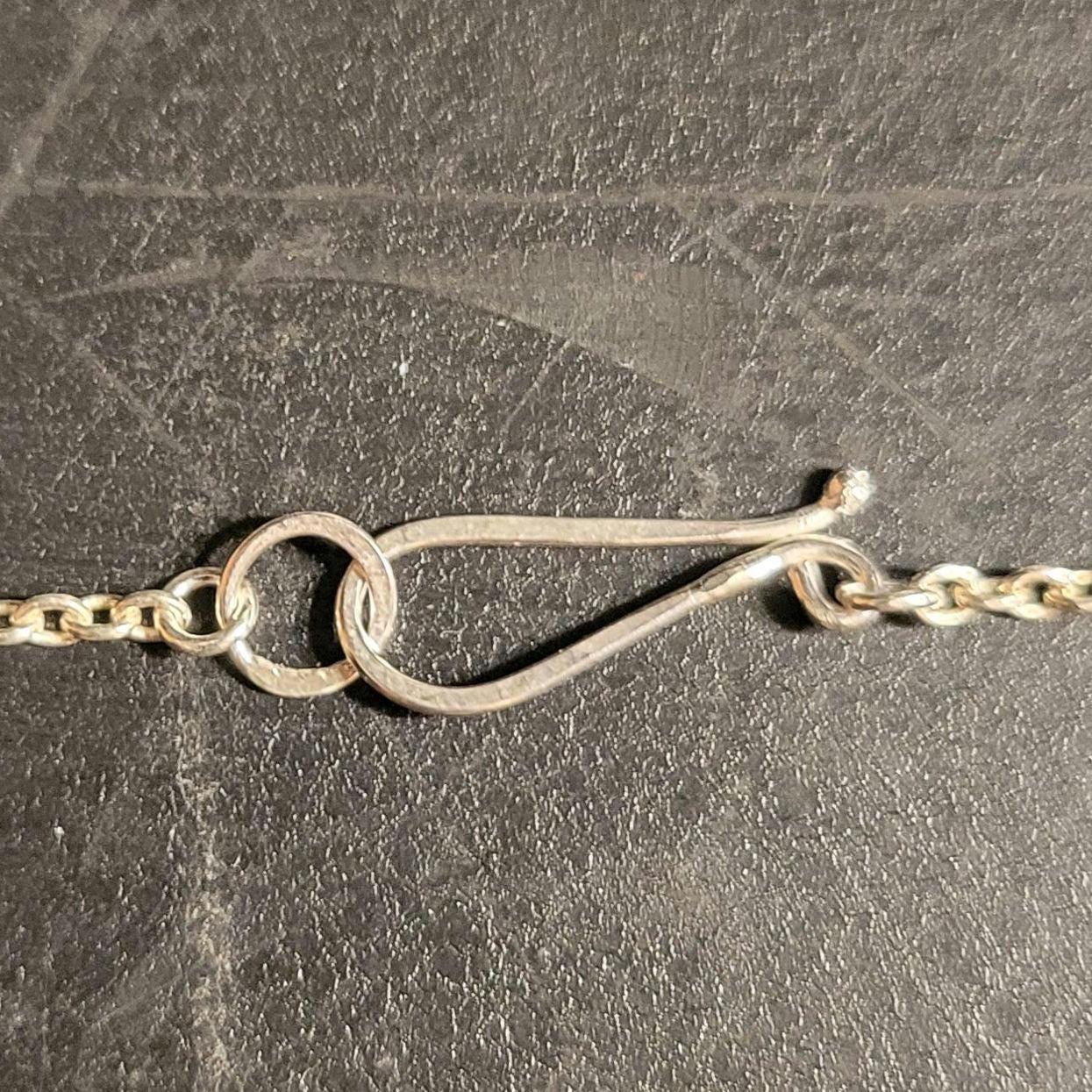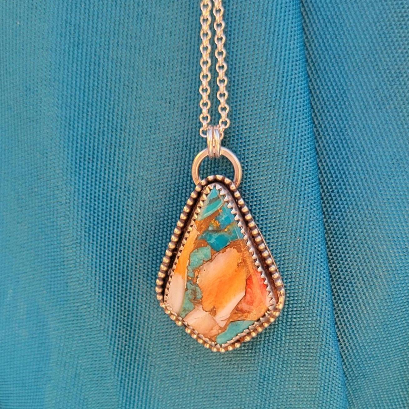 Oyster Shell Turquoise pendant with sterling silver setting, chain & handmade clasp. Chain is 17" rollo