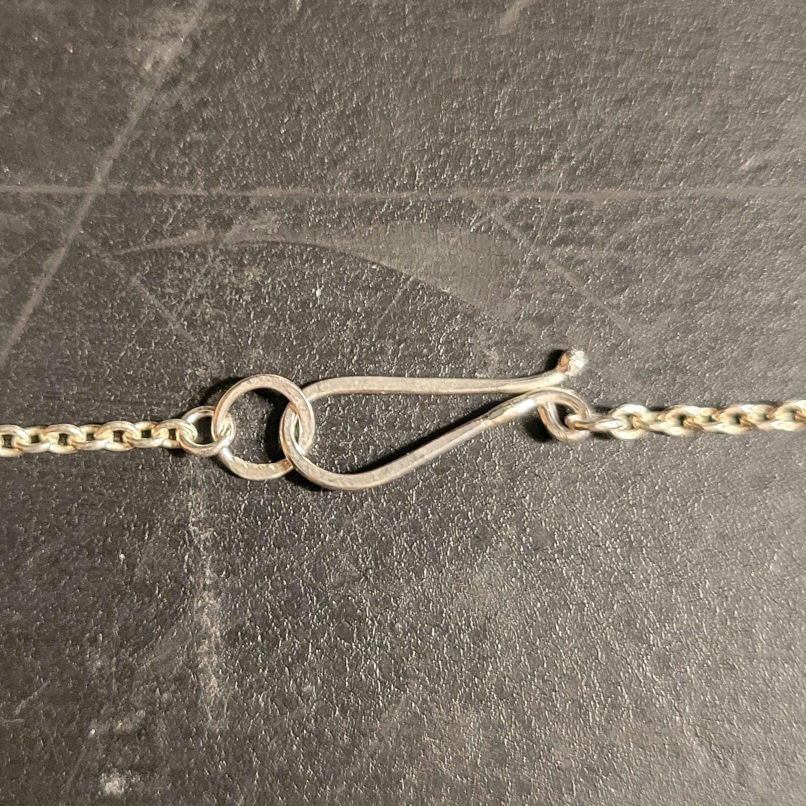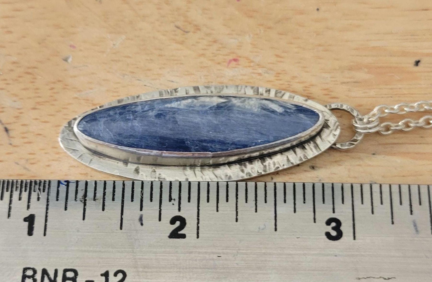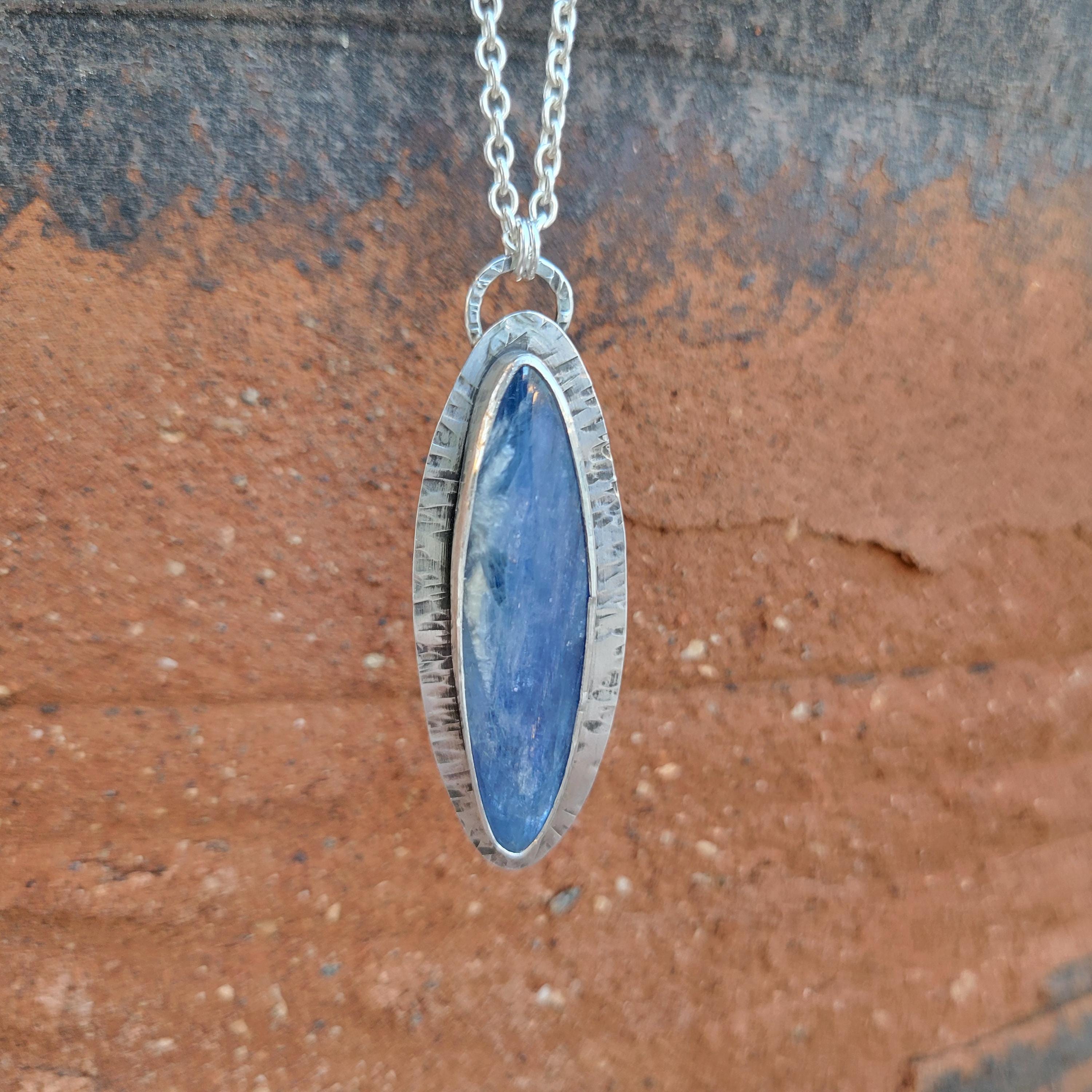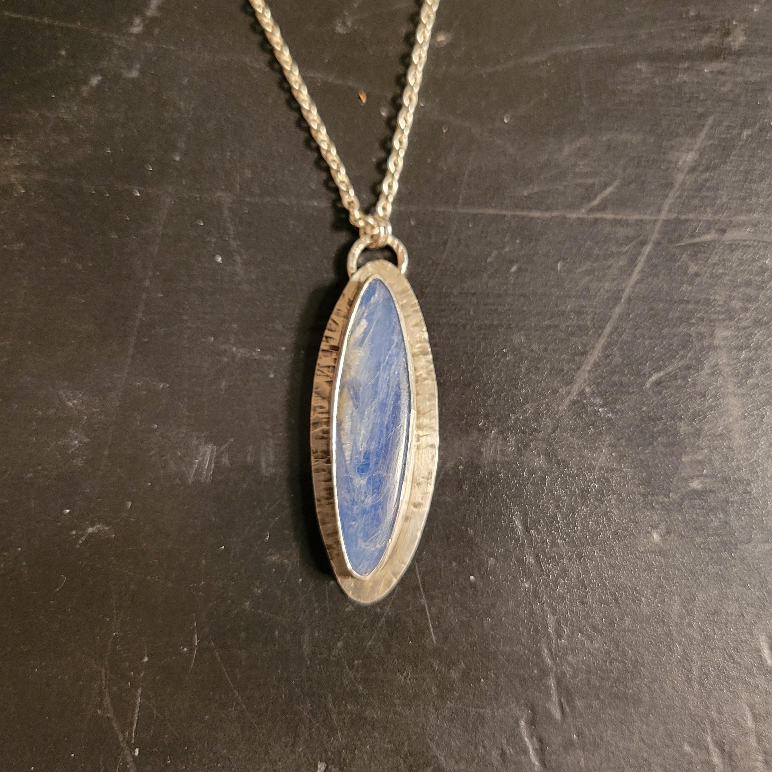 Kyanite set in textured sterling silver with sterling silver chain & handmade clasp. 18" rollo chain.