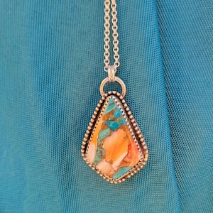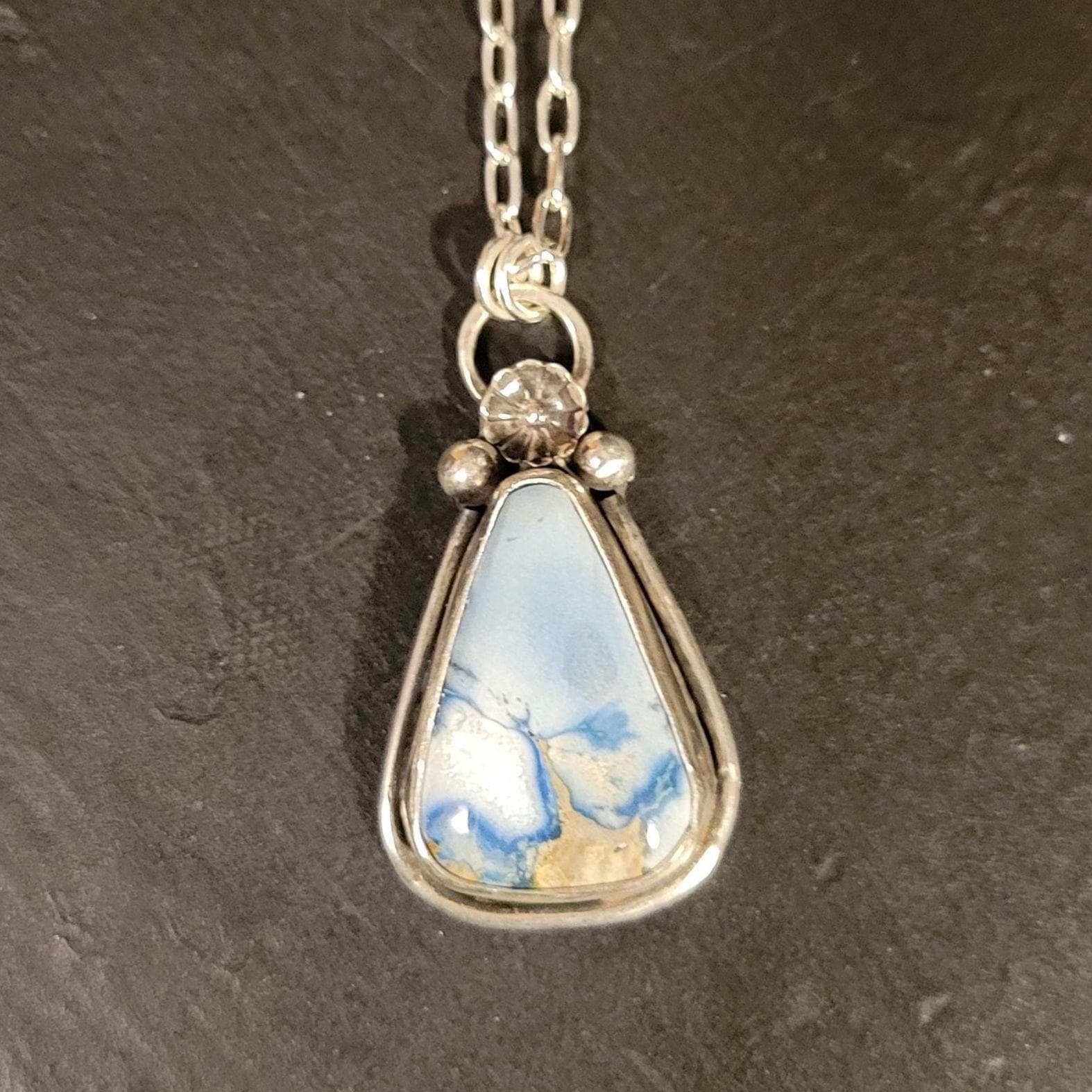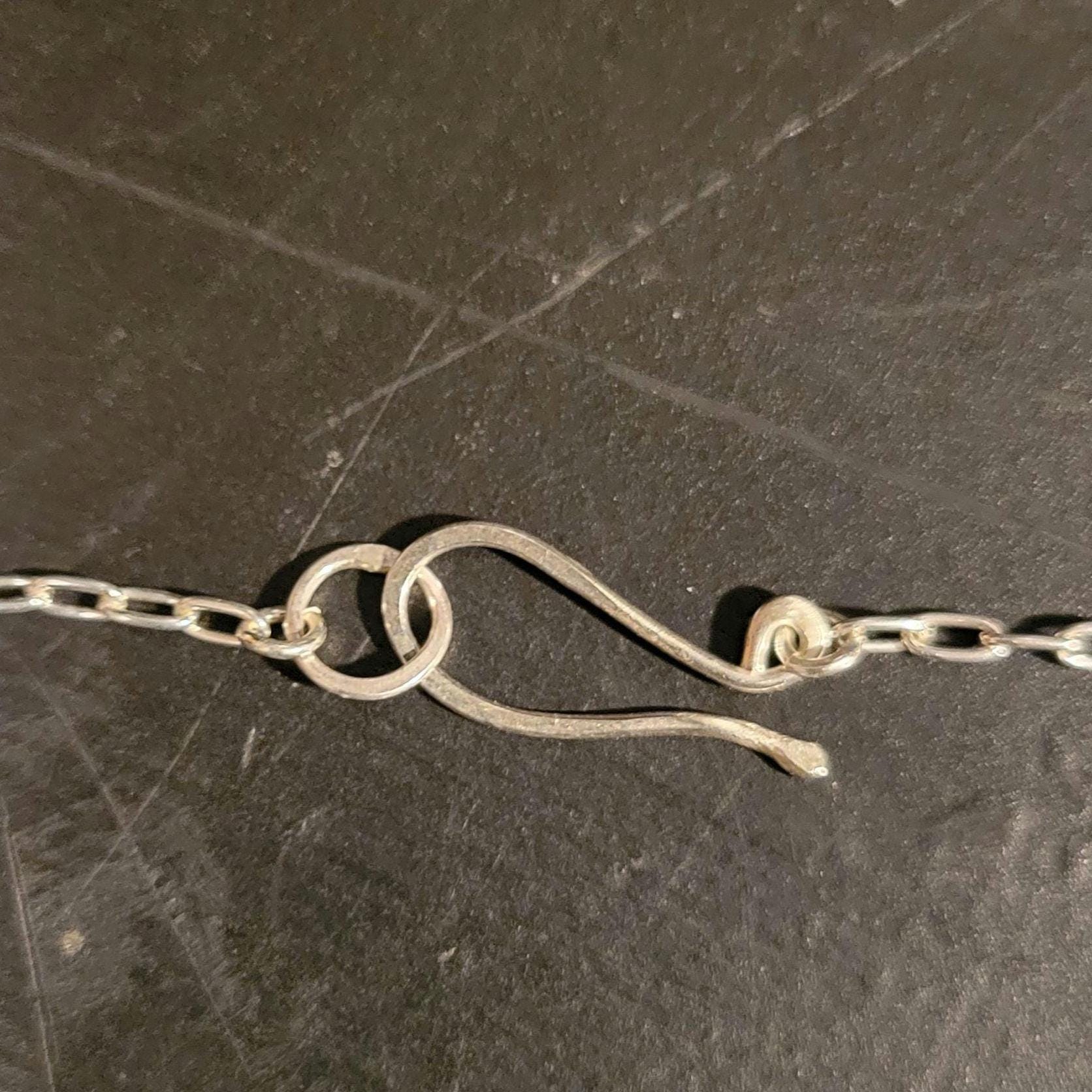 Hotsonite with Sterling Silver setting, chain & handmade clasp.