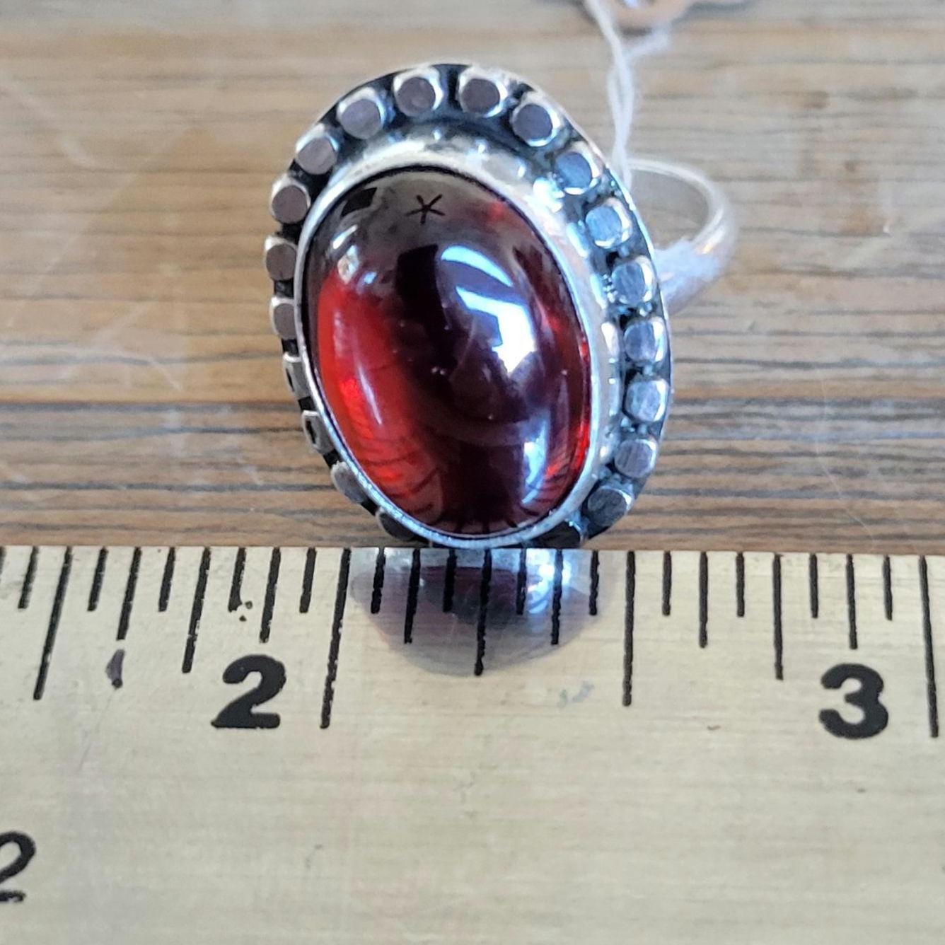 Brilliant Hessonite Garnet smooth oval stone with sterling silver setting, embellishments & 10g single half round band.
