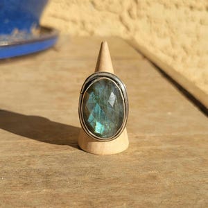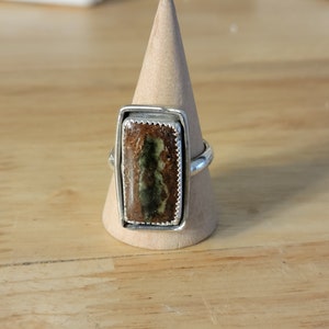 Hessonite Garnet oval stone with sterling silver setting & 1/2 cm wide patterned band.
